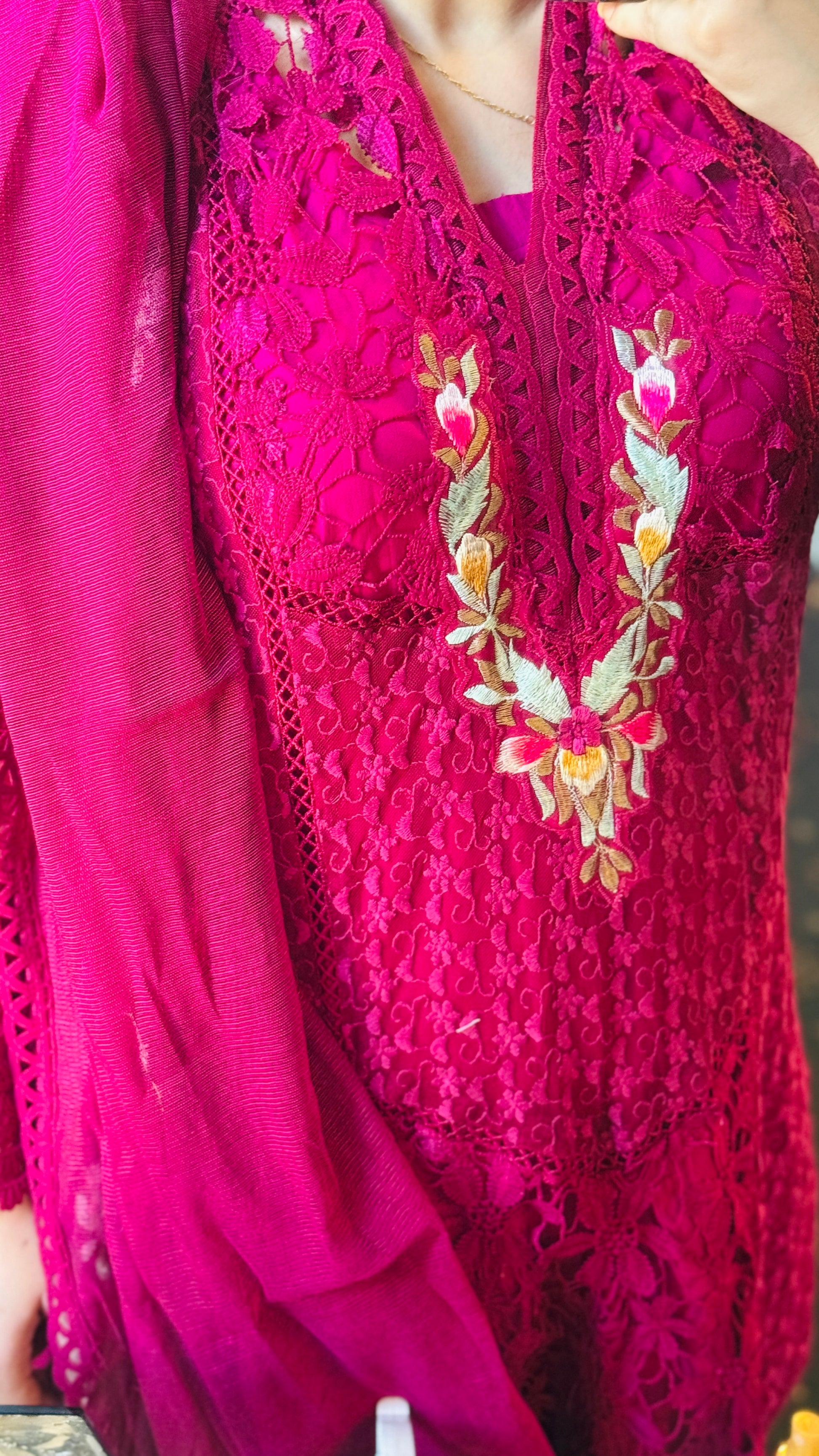 🧣 Dupatta: 2.75 yards of Khaddi Net with intricate detailing, ready-to-wear for effortless styling.